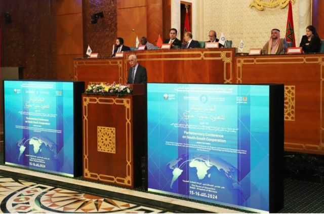 La conférence s’inscrit également dans le cadre de la mise en œuvre de la Déclaration de Rabat capitale de la coopération Sud-Sud, publiée au terme du Forum Sud-Sud, tenu en mars 2022 et vient réaffirmer la nécessité de renforcer les liens de coopération Sud-Sud et l’action commune des institutions législatives, particulièrement à la lumière des crises multiples et successives que traverse le monde aujourd’hui.